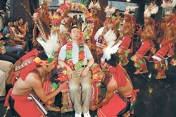 大陆踩线团团长范贵山,被当成台湾少数民族大头目,接下许愿酒,连干三杯,许下北京奥运成功、两岸旅游“火火红红”、两岸人民幸福美满等三个愿望。