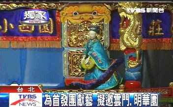 报道说,节目包括大家熟知的明华园,还有云门舞集,其它还包括朱宗庆的打击乐团以及小西园掌中戏等等,目前都在征询档期。