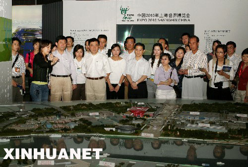 6月26日,郝龙斌一行考察台北的两个参展案例选址。当日,台北市市长郝龙斌一行参观上海世博会园区规划模型并实地考察正在建设中的“城市最佳实践区”。郝龙斌对台北两个参展案例在“城市最佳实践区”中获得的展示位置和场馆规划“很满意”,表示要以此次参展为起点,创造台北与上海合作交流的新模式。 新华社记者 任珑 摄