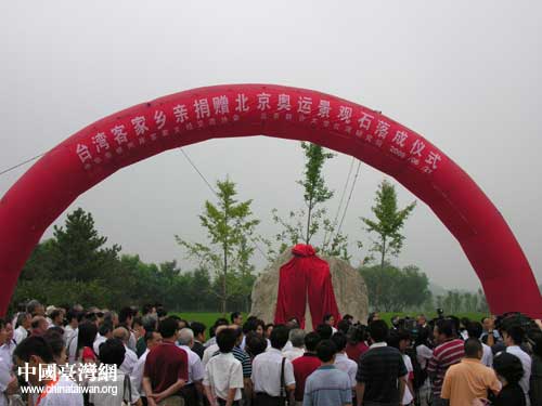 中国台湾网6月27日北京消息 6月27日上午,台湾中华海峡两岸客家文经交流协会与北京联合大学台湾研究院,在北京奥林匹克森林公园隆重举行“台湾客家乡亲捐赠北京奥运景观石落成仪式”。客家籍的著名台湾问题专家、北京联合大学台湾研究院院长徐博东,用客家话主持了今天的落成仪式。