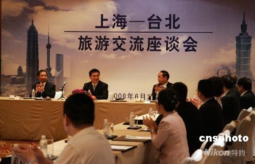 6月25日,“上海——台北旅游交流座谈会”在上海举行,台北市长郝龙斌出席。 中新社发 潘索菲 摄