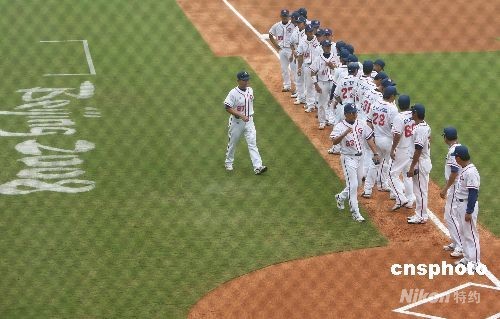 8月13日,北京奥运会棒球比赛揭幕战在中华台北队和荷兰队之间举行,中华台北队亮相。 中新社发 武仲林 摄