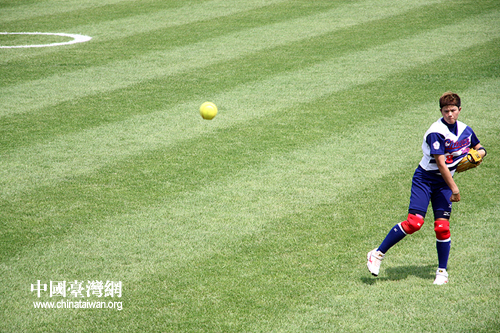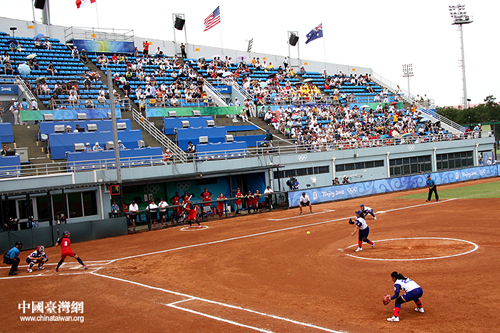 中华台北女子垒球队与美国女垒16日在丰台体育中心垒球场对决(摄影 李徽)