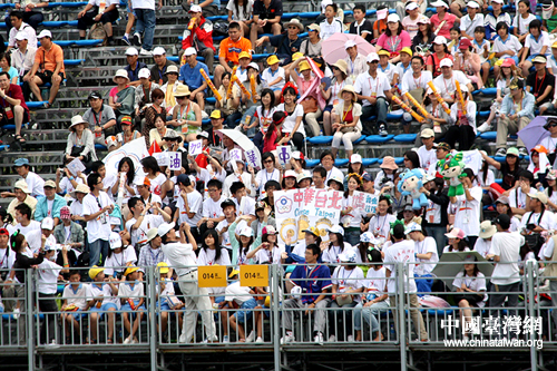 百余名台湾青年组成声势浩大助威团为女垒姑娘营造“家一样的”气氛(摄影 李徽)