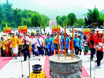 昨日,第三届“两岸青年联欢节—湘粤之旅”祭祀炎帝陵典礼活动在炎帝安寝之地——炎陵县炎帝陵举行,400名在广东读书的台湾青年与广东200多名青年参加了本次祭祀典礼。
