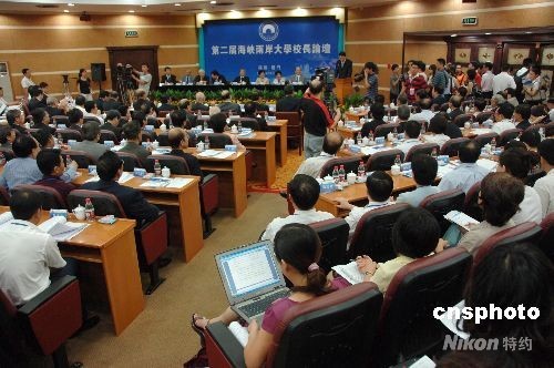 中新社厦门九月六日电 (记者 张彩林)由中国高等教育学会、福建省教育厅和厦门大学联合举办的“第二届海峡两岸大学校长论坛”六日在厦门大学揭幕,来自海峡两岸九十多所高校的近二百名校长、副校长或校长代表聚首厦门,就“两岸大学的交流与合作”、“大学的办学理念与社会责任”两大议题展开深入探讨与交流。