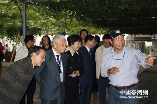 郁慕明和许历农在园区内同台湾农业技术人员交流