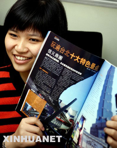 11月26日,一位女孩在介绍《畅游台湾》杂志。 近日,《畅游台湾》杂志在上海面世。该杂志深入介绍了台湾的自然风光、历史人文、时尚消费、生活模式等。《畅游台湾》杂志由国台办主办,台湾旅奇国际有限公司经营、发行。 新华社记者张明摄
