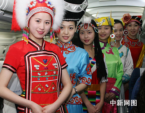 “民族之花”乘务组的姑娘身着漂亮的民族服装提前亮相