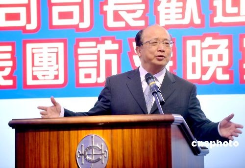 四月十五日晚,“香港-台湾城市交流论坛”活动后举行晚宴。台中市市长胡志强在晚宴上致辞。 中新社发 邓庆乐 摄
