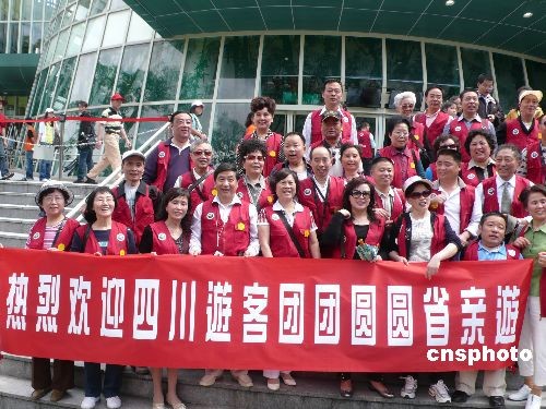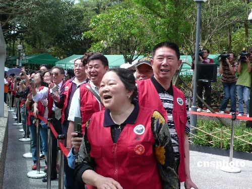四月十八日上午,四川赴台湾旅游首发团在台北动物园熊猫馆游览。中新社发 邓敏 摄
