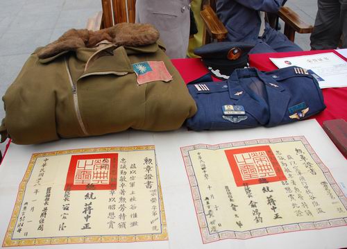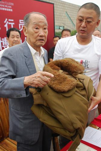 中新网成都6月10日电(记者杨杰)10日上午,抗战飞行员、93岁的台湾同胞谷帷澂先生来到四川建川博物馆,将其珍藏保存了60多年、在抗战中穿戴过的原中国空军飞行服装及勋章、奖章等捐赠给四川建川博物馆、中国人民抗日战争纪念馆。