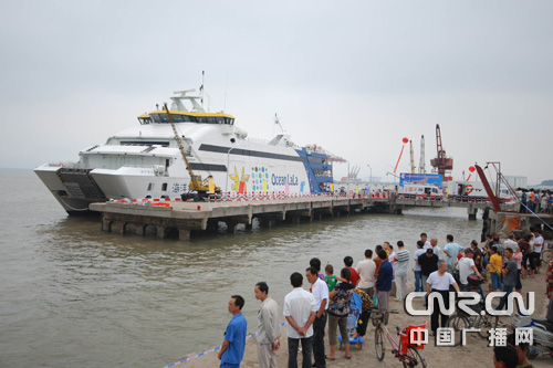 中广网浙江7月7日消息(通讯员 郏策)7月7日上午,浙江省台州港大麦屿港区对台湾海上客运直航仪式在台州玉环举行。318位台州各界人士搭乘台湾“海洋拉拉”号邮轮直航台湾宜兰,这是两会签署相关协议后浙台海上客运的首航。