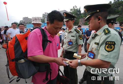 7月7日,台湾“海洋拉拉”号邮轮乘客登船前接受边防检查。