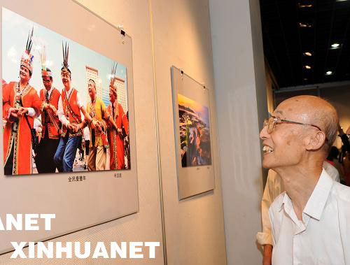 9月16日,一位南京市民在摄影展上观赏反映台湾风情的照片。