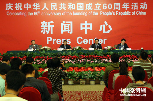 29日下午,国庆新闻中心召开发布会,上海世博会组委会委员、组委会联络小组常务副组长、中国贸促会副会长王锦珍与上海市常务副市长、世博会执委会常务副主任杨雄介绍了2010年上海世博会的各项筹备情况,并回答记者提问。(中国台湾网 钟宝华 摄)