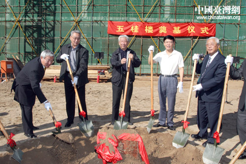 10月2日,全国台湾研究会副会长孙晓郁(中)、海协会副会长张铭清(左二)等有关部门负责人为北京台湾街“五桂楼”奠基。(中国台湾网 田云鹏 摄)