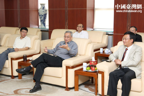 2日上午,位于石景山区的北京台湾街建设工地举行仪式,为仿建具有爱国历史意义的台湾雾峰林家“五桂楼”奠基。奠基仪式后,海协会副会长张铭清与台湾雾峰林家后人举行了座谈会。(中国台湾网 田云鹏 摄)