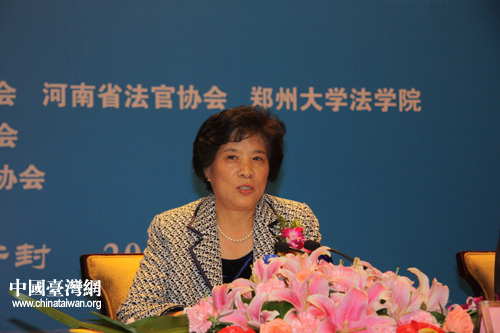 第二届海峡两岸法学学术研讨会今日下午在河南开封闭幕,会议取得丰硕成果。图为中国法官协会副会长王秀红作总结报告。(中国台湾网 杨丽 摄)