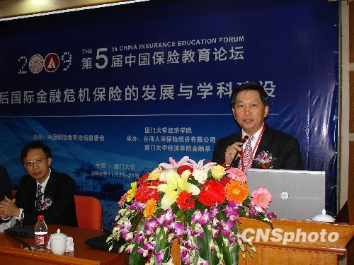 十一月二十一日,台湾人寿保险股份有限公司董事长朱炳昱在厦门表示,在两岸银行、证券、保险等合作方面,保险领域领先一步,取得先行先试的先机,但寿险业面临一些亟待解决的议题,盼望能早日透过ECFA(两岸经济合作框架协议)的签署最终加以解决。当天,第五届中国保险教育论坛在厦门举办。 中新社发 杨伏山 摄