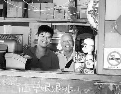 中午,我们来到一个酒店,这个酒店真是古色古香,这里竟有百年前的酒壶、邮箱,有几十年前的饼干筒和电风扇,还有吃饭的桌子、凳子,类似明清的家具。入座后,我们吃了一些别具风味的台湾小吃,十分爽口。吃完饭我们正在休息,正在服务的一个小伙子见到我,他说:“爷爷,我一见您就知道您是从大陆来的。”我问为什么他看得出来,他回答说,因为这里经常接待大陆来的同胞。一来二去,我们聊起天来,非常谈得来。当他了解到我也喜欢收藏时,他说:“爷爷,你想看看我们这里的收藏吗?”我说:“太好了!”于是小伙子拿来一些老报纸和老的电影海报。当看到电影海报时,我眼前一亮:哎呀,这可是难得一见的电影海报!其中有《黄昏故乡》的电影海报,我知道这是一部描写大陆在台同胞对祖国的思念及其一生遭遇的电影,50年前在台湾放映过。还有一张《三盲女》电影海报,这部电影歌颂了当年“日据时代”与敌人巧斗智斗的3位年轻盲女,可歌可泣,可敬可亲。我看了这两张电影海报,心潮起伏。小伙子看我很激动,竟说:“您真是一位可敬的爷爷,我愿意将这两份海报送给您,以表心意。”我说:“‘君子不夺人之所爱’,你还是收藏吧!”小伙子说:“既然都是中国人,不要客气。”一边说,一边将这两张海报卷起来塞到我的手上,我真是无言以对。想了半天,我说:“那好吧!谢谢!那咱们照张相作纪念吧。”小伙子说:“可以,可以,太好了,就在我们的收银台前照吧!”于是小伙子满面春风地和我合了影。今天,我看到这张照片,看到这两张电影海报,我的心好像又飞到了彼岸,飞到了美丽的宝岛台湾。小伙子,我们何日再相逢啊!(黎泽重)