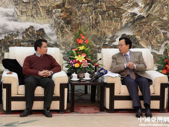 图为原中共河南省委书记徐光春会见台湾媒体记者(中国台湾网 徐维彬 摄)