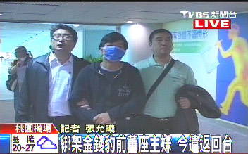 今年9月伙同5名嫌犯,绑架“金钱豹”前董事长陶伟新,并勒索2000万元的主嫌何育纶在大陆落网。今天在海峡两岸打击犯罪互助协议下,以包机的方式遣返回台。