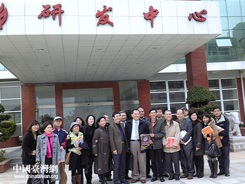 台湾嘉宾在石狮市海峡两岸科技孵化基地研发中心前合影。(中国台湾网 张弛 摄)