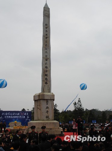 在纪念抗日战争昆仑关大捷七十周年之际,海峡两岸参加过昆仑关战役的老战士代表、抗日著名将领亲属代表等各界人士千余人十八日聚集在广西南宁昆仑关烈士墓园,焚香祭奠抗日先烈,放飞和平鸽祈望和平。