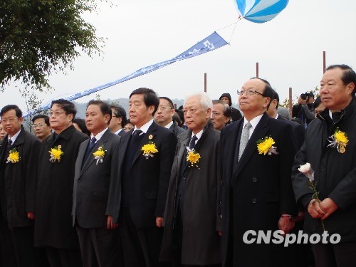 全国人大常委会副委员长、民革中央主席周铁农(右三),中国国民党副主席蒋孝严(右二),海协会副会长王在希以及海峡两岸参加过昆仑关战役的老战士代表、抗日著名将领亲属代表等各界人士千余人出席大典,共同缅怀抗日先烈。 中新社发 黄艳梅 摄