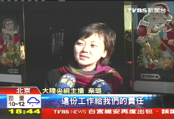 据台湾TVBS报道,时隔一年,柴璐再度到台湾采访两岸两会领导人会谈。她说:“要承担这份工作给我们的责任,即使他们要发动所谓的10万人,我想那跟2290万人相比来说,也并不是一个大数字。”