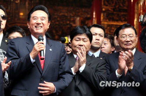 海协会会长陈云林12月23日前往台中大甲镇澜宫参访,受到在场妈祖信众的鼓掌欢呼。陈云林说,今天来这里为妈祖进香算是如愿以偿,感谢有这么多乡亲欢迎我,和我一起向妈祖进香。 中新社发 曾嘉 摄