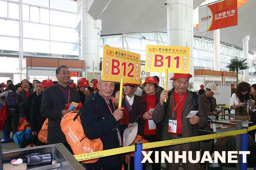 3月14日,首个近千人大陆赴台旅游团取道厦门――金门的小三通航线赴台观光旅游,游客们正准备通关。2009年“相聚金门、情游台湾”千人赴台游首发团由952人组成,其中80%是来自浙江义乌的中老年人,该团在浙江杭州乘坐专列于3月13日抵达厦门。旅游团在台湾停留时间为5天4夜,将分别游览台北、高雄、嘉义、台中、新竹等地区。新华社记者 项开来 摄