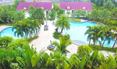 两岸交流日渐热络带动了日月谷温泉度假村的发展。图为温泉区一角鸟瞰。林辉 摄