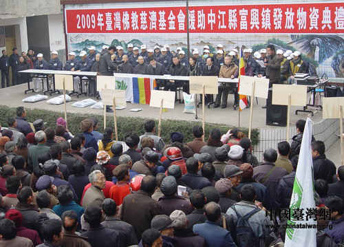 台湾慈济会德勱、德勷、德愷法师、德阳市台办主任独远程以及各相关市县党政领导、台办与相关镇乡负责人分别出席发放仪式,来自境内外的200多名慈济会志工进行了物资的发放。