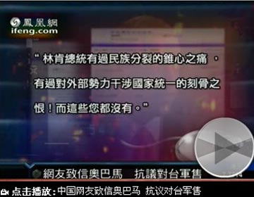 一个署名为LTML的网友日前在论坛上致信奥巴马,批评对台军售的行为与他当初在竞选和访华期间所作出的承诺不相符。
