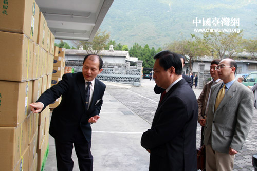 6日,慈济人员向全国台联会长梁国扬一行介绍为海地地震灾区准备赈灾物资的情况。当天上午,梁国扬一行参访了位于花莲的慈济功德会。 (中国台湾网 田云鹏 摄)