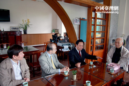 梁国扬一行与慈济大学董事、原台湾大学医学院院长杨思标进行茶叙。(中国台湾网 田云鹏 摄)