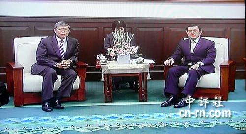 资料图:马英九与台湾“独派大老”辜宽敏的长子辜朝明会面。(中评社 倪鸿祥翻摄)