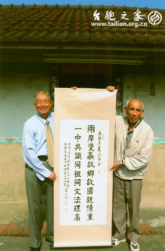 这时,打听到台湾东森文化基金会执行长张国祥先生来福州后要返台湾,我即拜托他把礼品送到善化镇蔡家。张国祥先生到善化蔡家时,蔡老先生的长子80岁的蔡腾芳手捧先父遗像,带领全家十几人在家门口迎接远方来客,小心翼翼地打开礼品盒,全家人睹物思人,很是激动,举着礼品合影留念。之后,腾芳隔海给我挂电话,代表全家人向我表示感谢!在电话中还一再希望我有机会时,欢迎再到善化来,我内心感到莫大的宽慰。