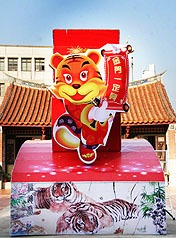 中新网2月24日电 据“中央社”报道,2010金门元宵灯会将于28日在金城镇浯江书院点灯,主题灯“福虎生丰灯”,今天(24日)布置完成,为欢庆元宵系列活动揭开序幕。