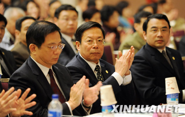 3月9日,中国社科院研究生院院长刘迎秋(中)、副院长文学国(右)等学者出席“2020年两岸产业大趋势论坛”。新华社发(吴景腾 摄)