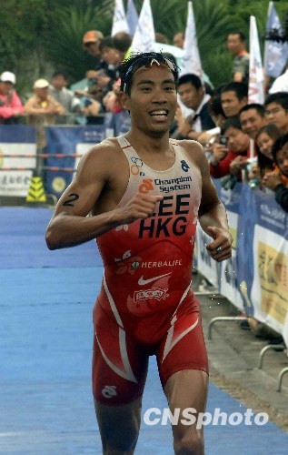 5月15日,香港选手在比赛中全力冲刺。当日,2010年福州国际铁人三项洲际杯赛暨全国铁人三项冠军杯系列赛在福州举行。 中新社发 王东明 摄