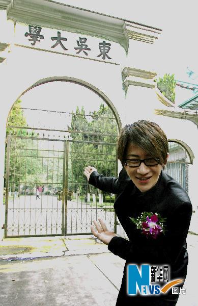 5月18日,台湾魔术师刘谦在苏州大学旧址前留影。当日是苏州大学110周年校庆纪念日,该校举行仪式聘请台湾魔术师刘谦为学校董事会荣誉董事。据悉,刘谦当年毕业的母校——台湾东吴大学与苏州大学同根同源,这次他是作为“校友”受聘的。刘谦表示,今后将努力为苏州大学培养魔术社团,为学校的发展出力。 新华社发(华雪根 摄)