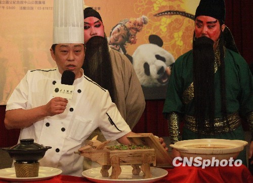 据推出“三国宴”的亚太会馆人员介绍,“三国宴”受到了台湾食客热捧,计划21日-23日每天限量5桌,每桌10人,每桌12800元新台币。在用餐的同时,每上一道菜,服务人员都会将菜色典故作说明,让食客在浓浓三国文化中享受美食。(记者 罗钦文 董会峰)