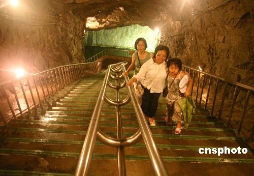 台湾金门古岗翟山小艇坑道,是军方释出交由金门公园管理处接管开放的第一座观光坑道,不但鬼斧神工,且有冬暖夏凉的特性,是夏日游客的最爱。 中新社发 CNA 摄