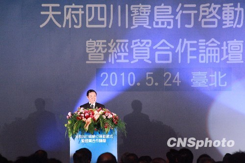 5月24日,“天府四川宝岛行”在台北启动,率团访台的中共四川省委书记刘奇葆出席启动仪式并作主题演讲。中新社 罗钦文 摄