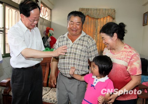 5月22日下午,首度以海峡两岸农业交流协会名誉会长身份访台的危朝安一行,驱车来到以种植芒果著称的台南县南化乡,继续“乡村之旅”。图为危朝安(左)在该乡北寮村果农蔡炳男家中做客,双方交谈甚欢。 中新社发 董会峰 摄