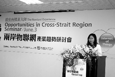 王晶说,去年8月,新大陆在台湾成立了新大陆台湾公司,旨在“物联网”方面与台湾科研机构和企业界加强合作。她介绍说,“物联网”主要表现在三个层面:一是“感知、识别”平台,即由二维码和RFAD(标准化)组成,这是基础,也是技术的核心。目前,新大陆在二维码研发方面技术先进,为世界六家拥有这一核心技术中的一家;台湾方面在RFAD研发上起步较早,技术也较成熟。所以在这一技术核心方面,两岸优势互补,合作潜力较大。二是传感部分,由运营商负责;三是智能处理和运用,新大陆在这方面率先在国内推广运用,如为农业部动物产品溯源及安全资讯化服务,已占大陆市场70%的份额;在手机支付(非现场支付)方面,也在国内率先运用。新大陆台湾公司成立以来,已与台湾科研机构如拓墣产业研究所、“工研院”等展开合作,在产业运用方面与台湾机电、台湾联电等合作,取得显著成效。