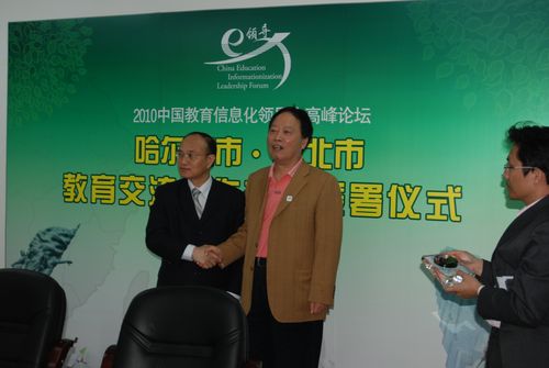 5月26日下午,“哈尔滨市·台北市教育交流合作备忘签署仪式”在哈尔滨市第十四中学举行。这是“中国教育信息化领导力高峰论坛”为两岸教育交流搭建的又一沟通平台。